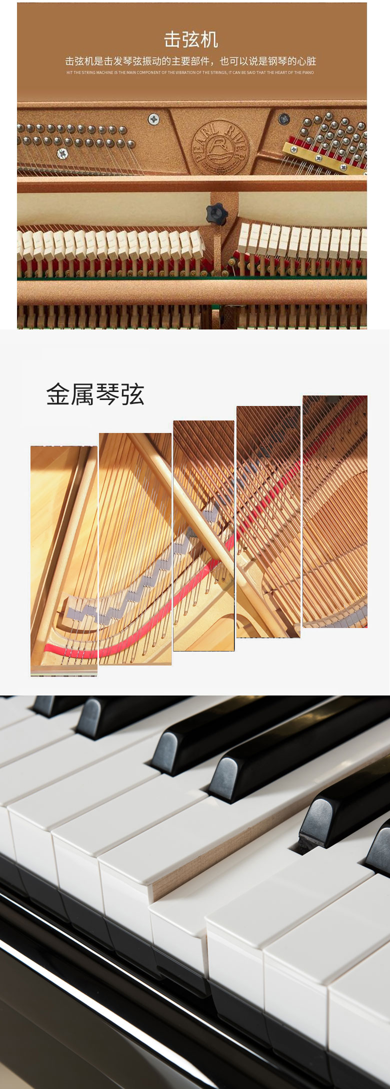 外殼選用特殊處理中纖板芯,穩定性和耐久性更強;飾以?xún)?yōu)質(zhì)涂料,更顯傳統華貴。 制作工藝精良,主題邊緣弧面裝飾,獨具時(shí)代氣息。 傳統的鋼琴制作工藝與現代科技結合的精湛工藝,音色與外觀(guān)更具人性化。